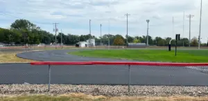 Superintendent Brett Abbotts says the contractor is finishing up installing a new track surface around the athletic field. However, he points out that just because the new surface is applied and is supposed to be done before Friday night’s Homecoming game, that doesn’t mean it has completely settled into place.