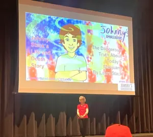 Midwest Wellness and Recovery CEO Megan Waters introduced Laura Stack, the founder and CEO of Johnny’s Ambassadors, as she gave a presentation and discussion after her own 19-year-old son Johnny died by suicide, after using marijuana. Waters said Stack turned her own grief into a mission of advocacy and research as she now tours different high schools and communities to prevent substance abuse among teens.