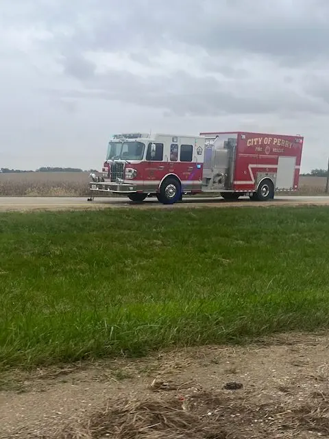 A gold SUV facing westbound on Highway 141 had previously caught on fire, and as the Perry Fire Department was controlling it, there were visible plumes of smoke eroding from the front engine area. There were no other passenger vehicles at the scene, as first responders were there. The Dallas County Sheriff’s Office was detouring traffic westbound off of Highway 141 and onto “M Avenue,” while crews were cleaning up the scene.