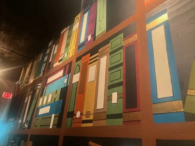 In addition to the books, Mills outlines the organization serves drinks of wines, beers, craft cocktails, pop, teas, and lemonade. There is a mural of books inside the store, and Mills reveals what drew her inspiration.