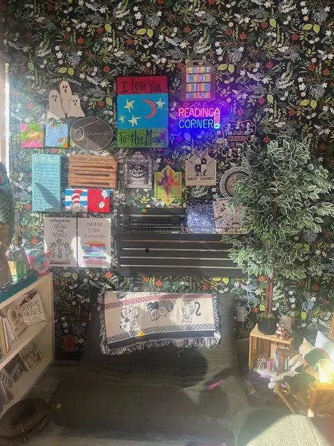 “I saw a TikTok of a lady that paints really cool bookshelf paintings, and I sent it to my best friend who is an artist, and I was like ‘How do you feel about doing something like this on a bigger scale.”
