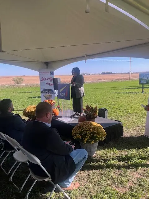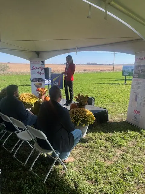 A.D.R. Axles USA held a groundbreaking ceremony on Thursday to officially mark the beginning of construction of their first facility in the United States with the headquarters in Perry. A.D.R. Axles USA President Chiara Radrizzani explains that the company produces axles and suspension for agricultural machinery and special applications. She shares that A.D.R. Axles visited many cities in different states around the country, and reveals how the group ultimately decided on choosing Perry.