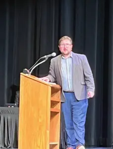 Greene County Bar Association President Brandon Hommer with opening remarks