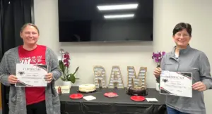 Retiring Board members Bonnie Silbaugh (left) and Michelle Fields (right)/Raccoon Valley Radio-Coltrane Carlson