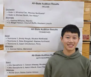 ADM’s Sariah Scott (flute), Amanda Gustafson (clarinet), Clara Uthe (clarinet), Owen Horgan (trumpet) and Chase Cline (tuba) qualified for the Iowa High School Music Association All-State Band. Eden Sedars (flute) and Meredith Maddy (trumpet) were selected as alternates.