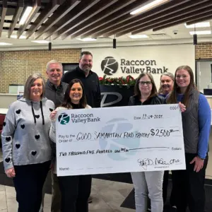 Raccoon Valley Bank presents a check to the Good Samaritan Food Pantry. Photo Courtesy of Raccoon Valley Bank