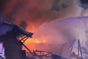 Hill details that firefighters knocked down the fire the best they could through an initial water attack. He adds that the roof collapsed shortly after he arrived on the scene and the department worked with Scott Hughes, with Hughes Excavation, to remove metal rafters and knock down walls.