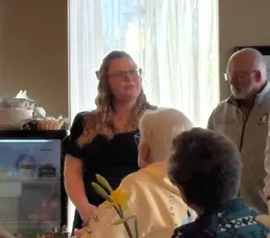 Restaurateur Bailey Porter, middle, receives Jefferson Wants You Grant. Photo by Coltrane Carlson-Raccoon Valley Radio
